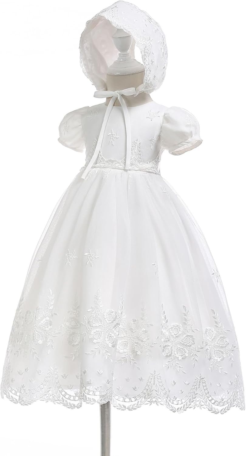 Taufkleidung Baby Flower Girls White Christening Baptism Dress Satin Tulle Gown Bonnet Infant Baby